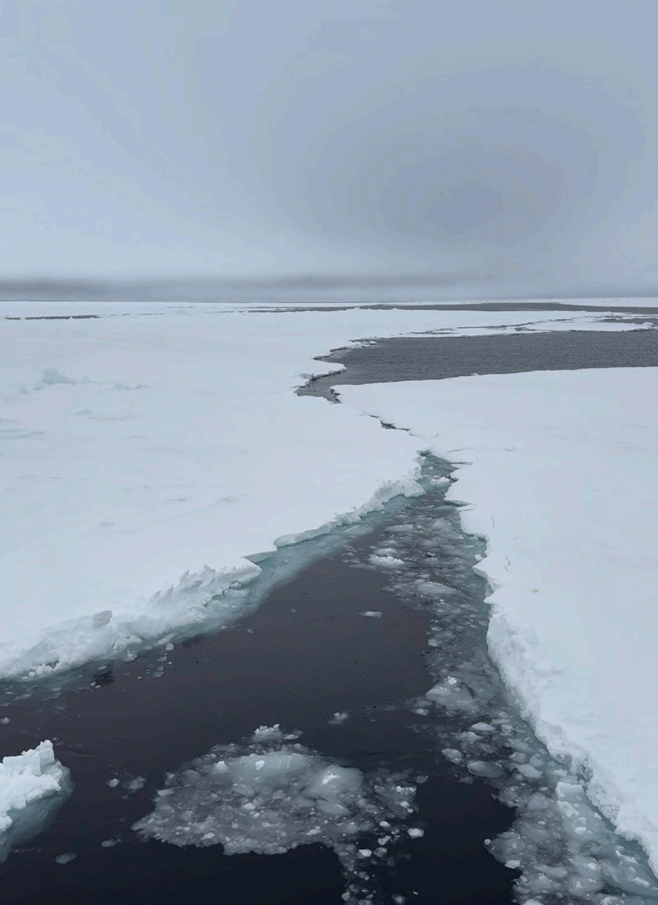 Our first day in the pack ice was pure excitement. The habitat is a dream to be in, and the promise of a polar bear had everyone glued to the deck, scanning the horizon. My team and I spent 11 hours scanning for any sign of a bear. By day’s end, all we found were fresh polar bear tracks, a promising sign, but I couldnt help feeling a little let down.