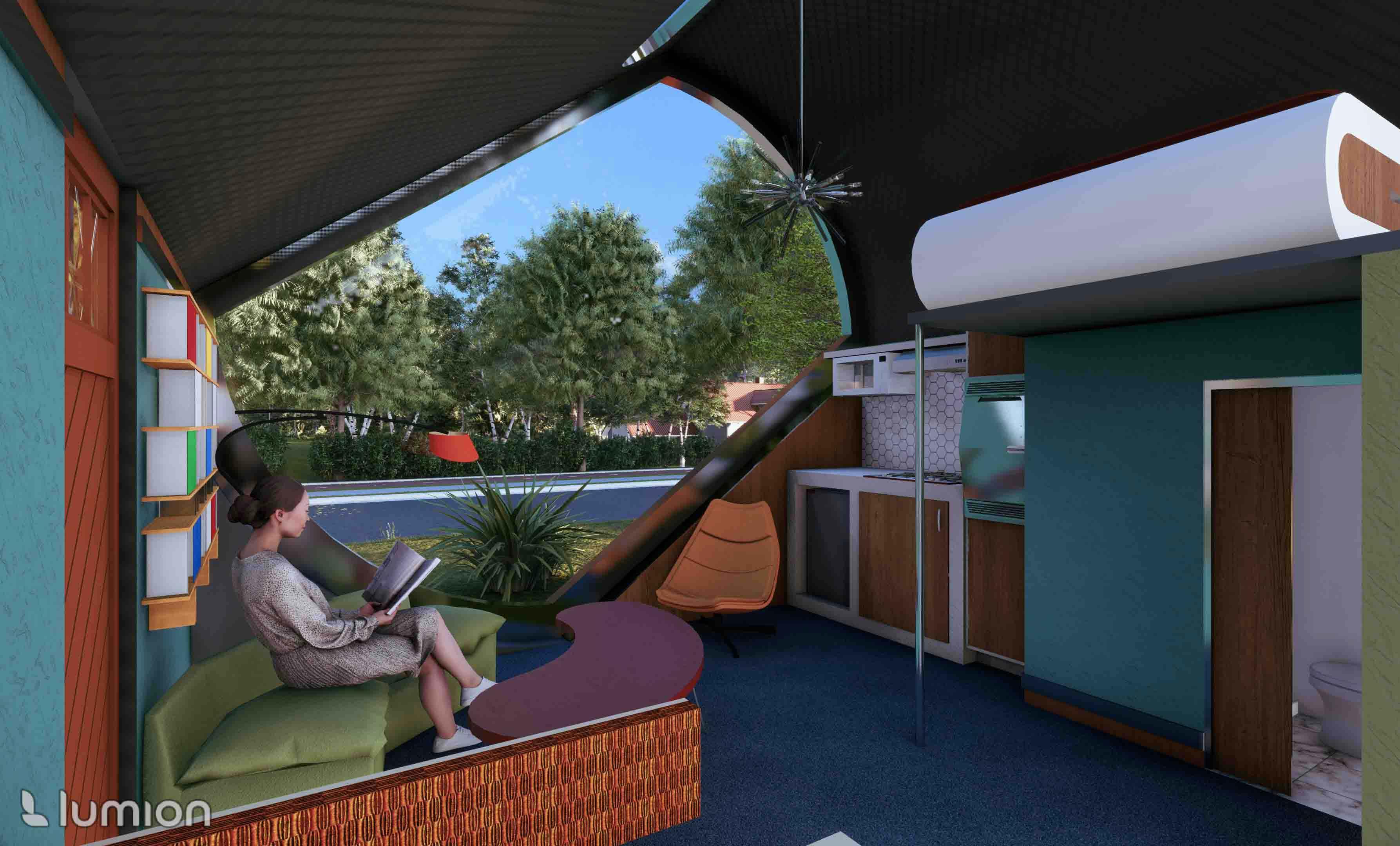The Kingspan Micro Home competition tasked to create a “micro home“ for a family of two, with all normal feature of a home while limited to a footage of 25M2. My design drew inspiration from mid century styles, retro-futurism, and modernism. It is a home of yesterday’s future, today.
