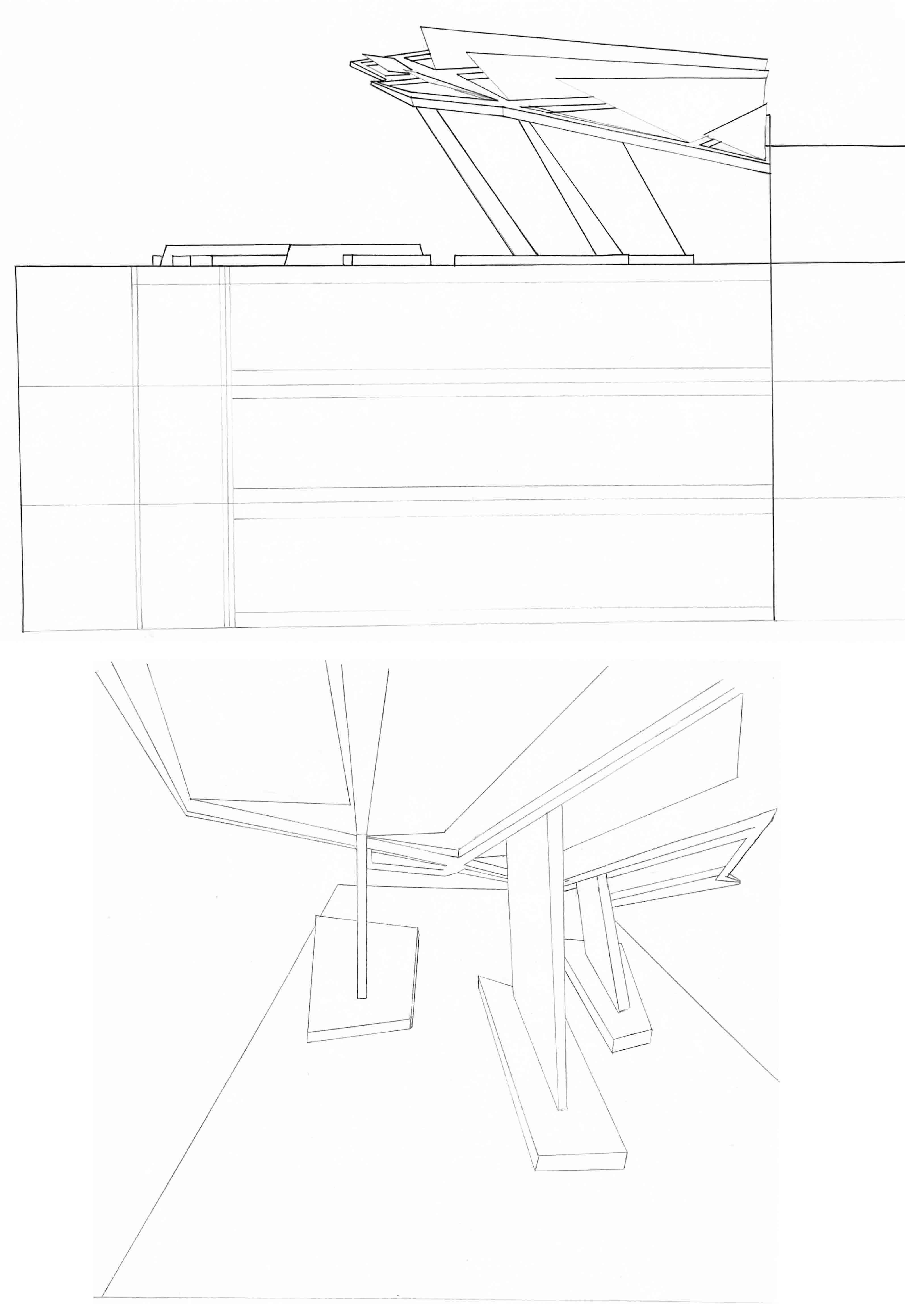 On top of a portion of the DAAP building at the University of Cincinnati, there is an inaccessible and unutilized space. In this project I reimagined the space for a viewing deck, drawing isnpiration from geometry from a painting and different parts of the building.