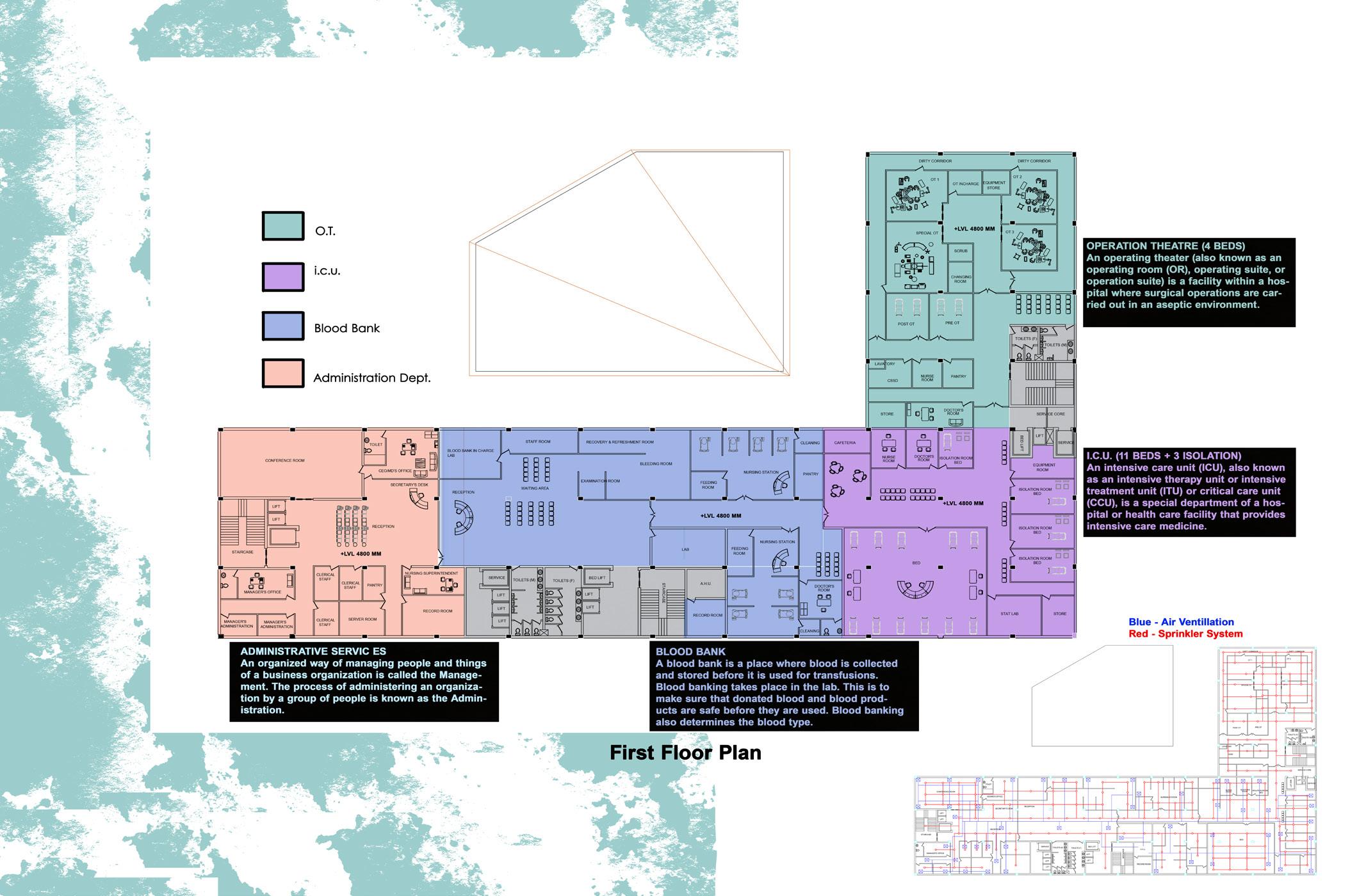 The intent of the project was to design and make a multi-speciality hospital of 100 beds. The design intent of this project was to separate out the outpatient and the inpatient department to seperate out the flow of patients.