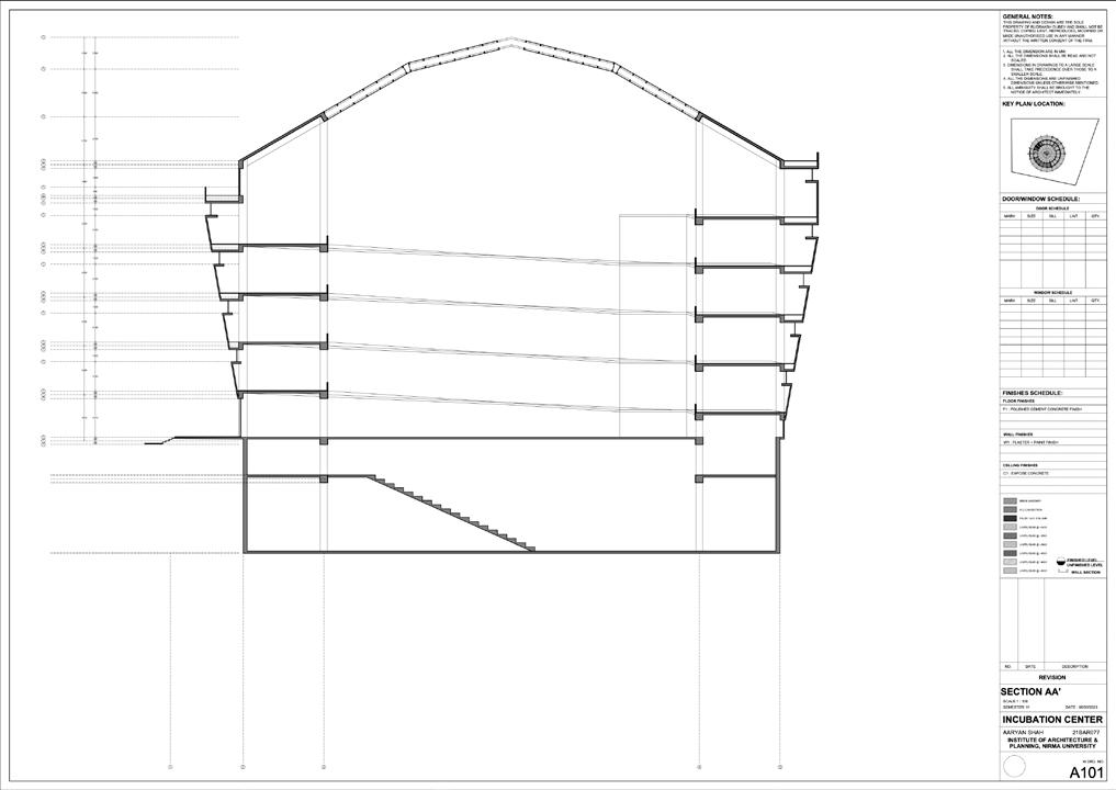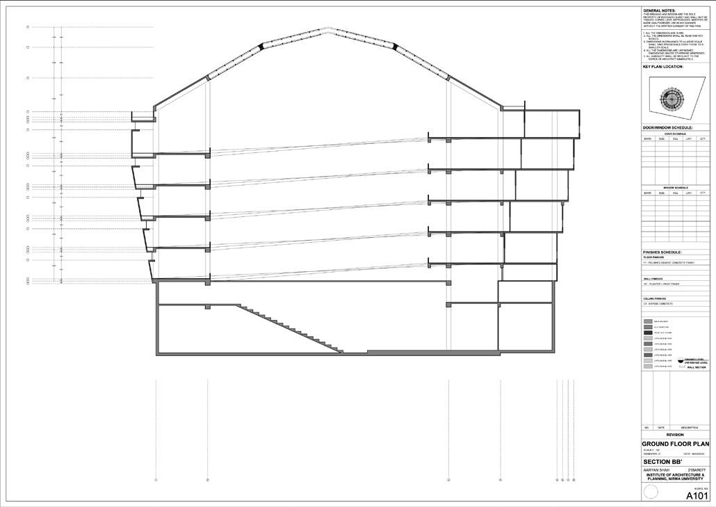 The approach towards the building should be such that it can be partly seen from the outside, but as a person gets into the site, he is lost meandering towars the mamoth complex. A ramp with an extremely gentle slope has been given for circulation of the visitors while they enjoy their exhibition journey.