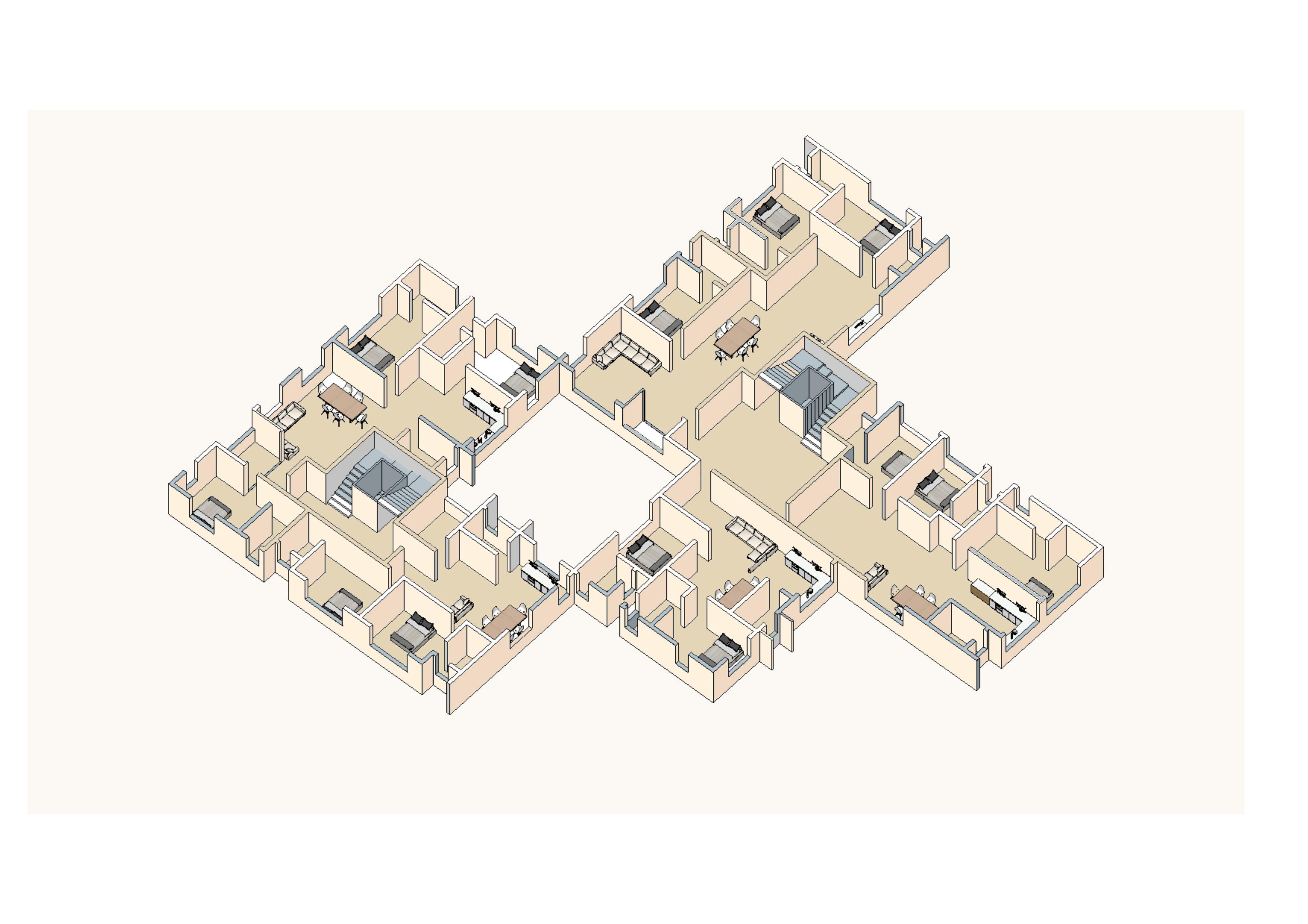 Started with exloration through massing models, the design was pivoted towards office deign.