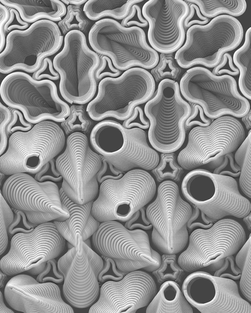 Through the use of six axis industrial robotic arm and clay extruders we achieve a system that self aggregates and interlocks to create spherical envelope.