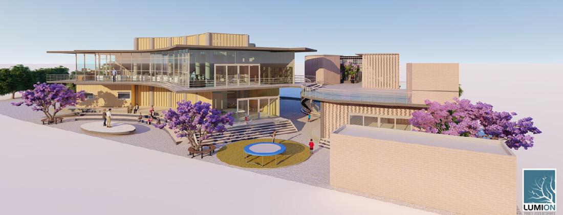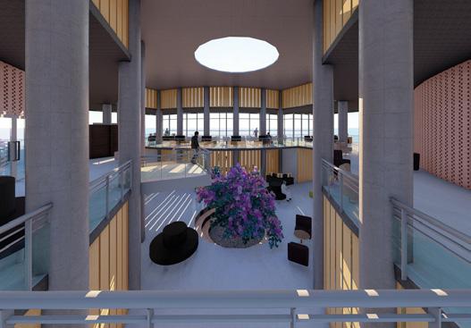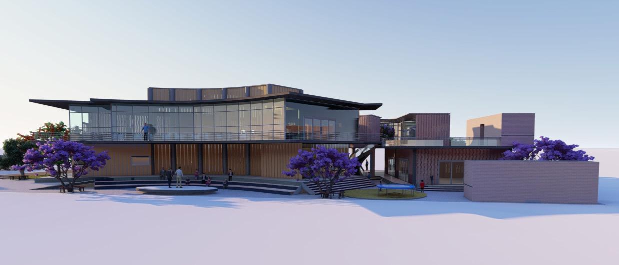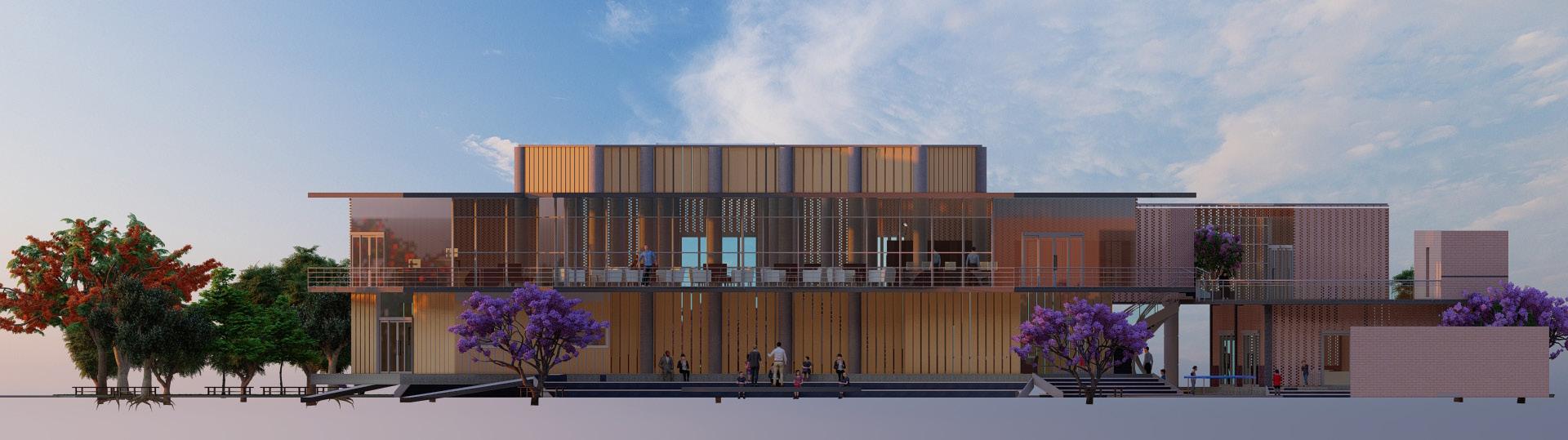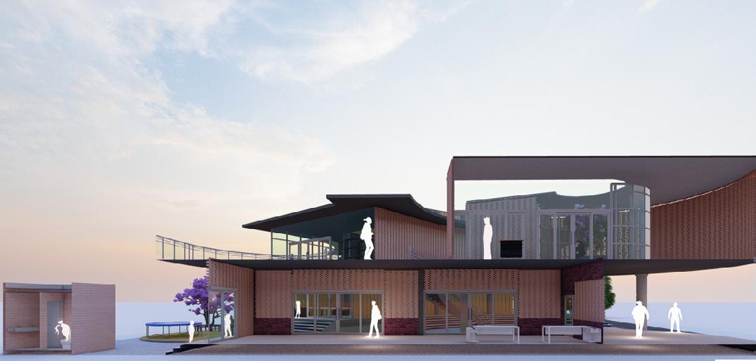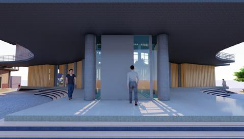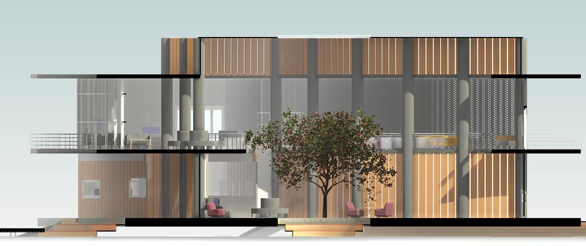A large central atrium with a central courtyard and play of shadows that created by the voids of walls and skylight that connects clinic, skill and knowledge centre, And anganwadi which acts as a common lobby and intraction zone. It creats openess and flexibility of spaces that makes the users socialize and interact. Two elements glass and jali walls that creats transparency as well as makes the space private.