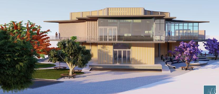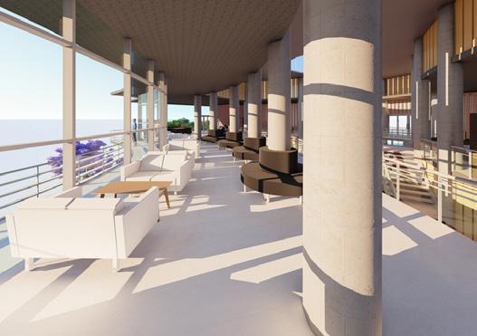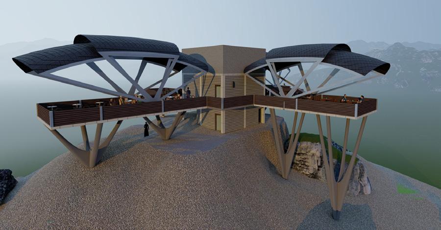 The gently descending cluster of buildings stretches over 800 m, resembling a hill that starts at the entrance to the city and culminates at the edge of the lake at the City Centre.