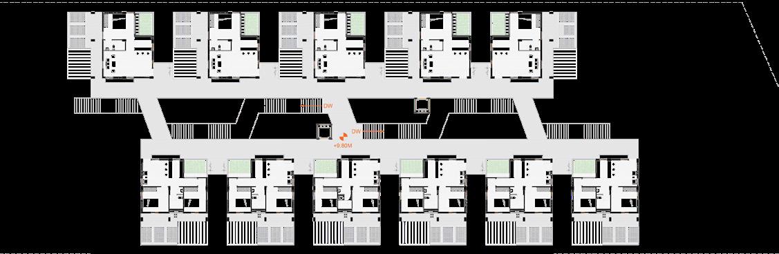 Keeping the orientation and prevailing wind direction the clusters were arranged in such a way that we take advantage of both along with the cross ventilation. The lower mass consists of family housing units along with double occupancy along with few private amenities.