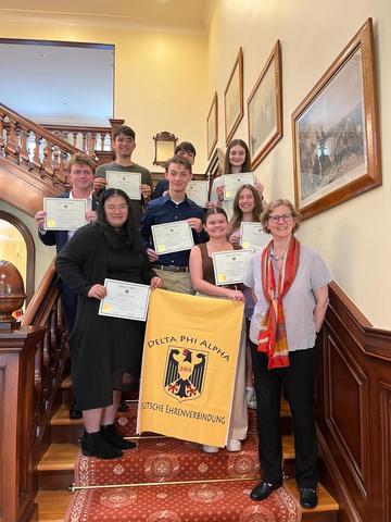Beide haben zusätzlich zu ihren hohen Punktzahlen beim National German Exam bereits das Deutsche Sprachdiplom I und II abgelegt, Maya ist derzeit in AP Deutsch eingeschrieben, Ian hat AP bereits mit der höchstmöglichen Punktzahl bestanden. Beide sind Mitglieder der National German Honor Society.