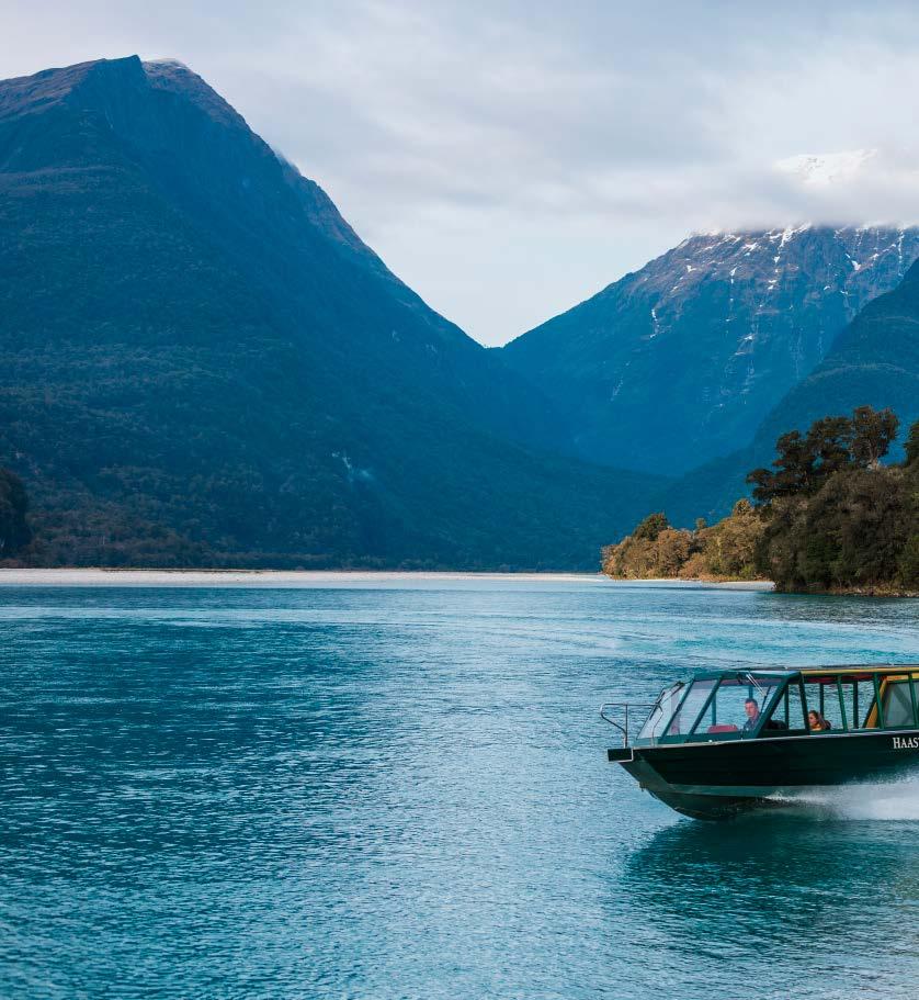 See lush rainforests, thundering waterfalls and interesting wildlife while aboard the Milford Mariner. Explore Haast River by jetboat and view snowcapped peaks from your TranzAlpine train journey.