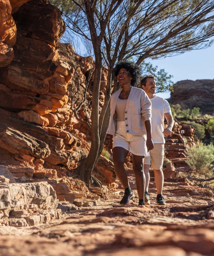 You’ll witness the many hues of an outback sunset blend into ochre natural wonders, hear ancient languages spoken and see stories written in the sand. Indulge in adventure, and when it's time to relax, embrace your idyllic surrounds.