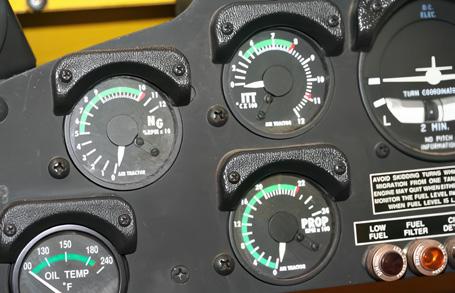 Indicadores de Ng, temperatura (ITT) y RPM de la hélice.