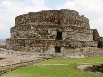 Revista Viajero Estelar | Vestigios Arqueastronómicos En Calixtlahuaca, Municipio De Toluca, México Periodos, áreas y pueblos de Mesoamérica, FUENTE: Alfredo, L. & . Leonardo, L. (2000). La periodización de la historia mesoamericana. Mapa de Calixtlahuaca, tomado de una digitalización de Timothy S. Hare. FUENTE: https://pueblosoriginarios.com/meso/valle/matlazinca/tecax ic.htmlEstructura 3. Gran pirámide circular de cuatro plataformas dedicada a Quetzalcoatl.