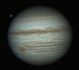 Júpiter muy cerca de su oposición, en la imagen se ve a Ío casi a punto de transitar y a su sombra ya sobre el Gigante Gaseoso. Foto tomada el día jueves 22 de septiembre a casi la medianoche, desde Metepec, Estado de México.