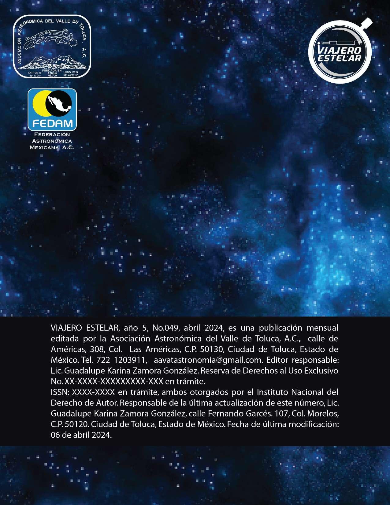 Revista Viajero Estelar. Asociación Astronómica del Valle de Toluca, A.C. No. 049. Abril 2024