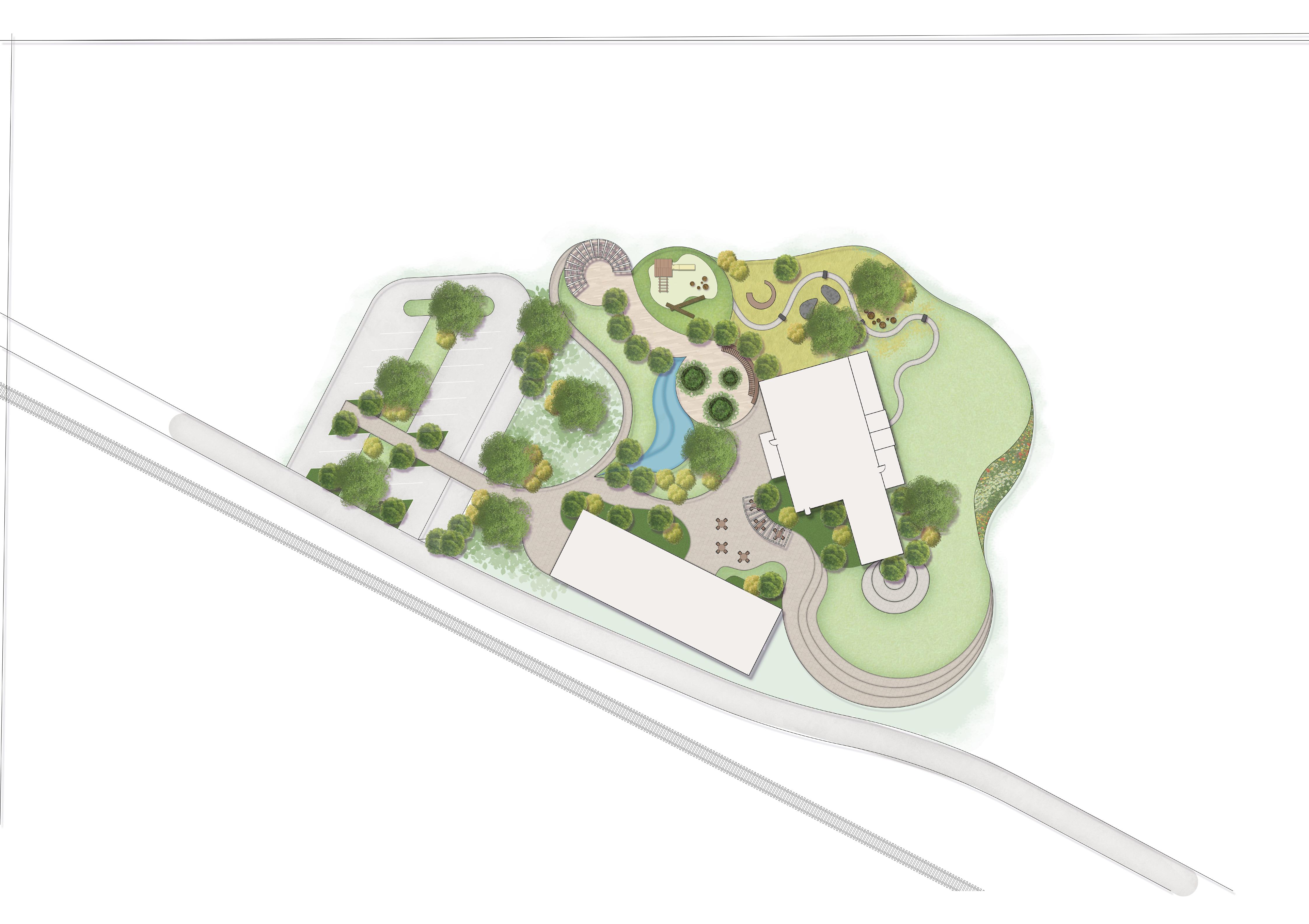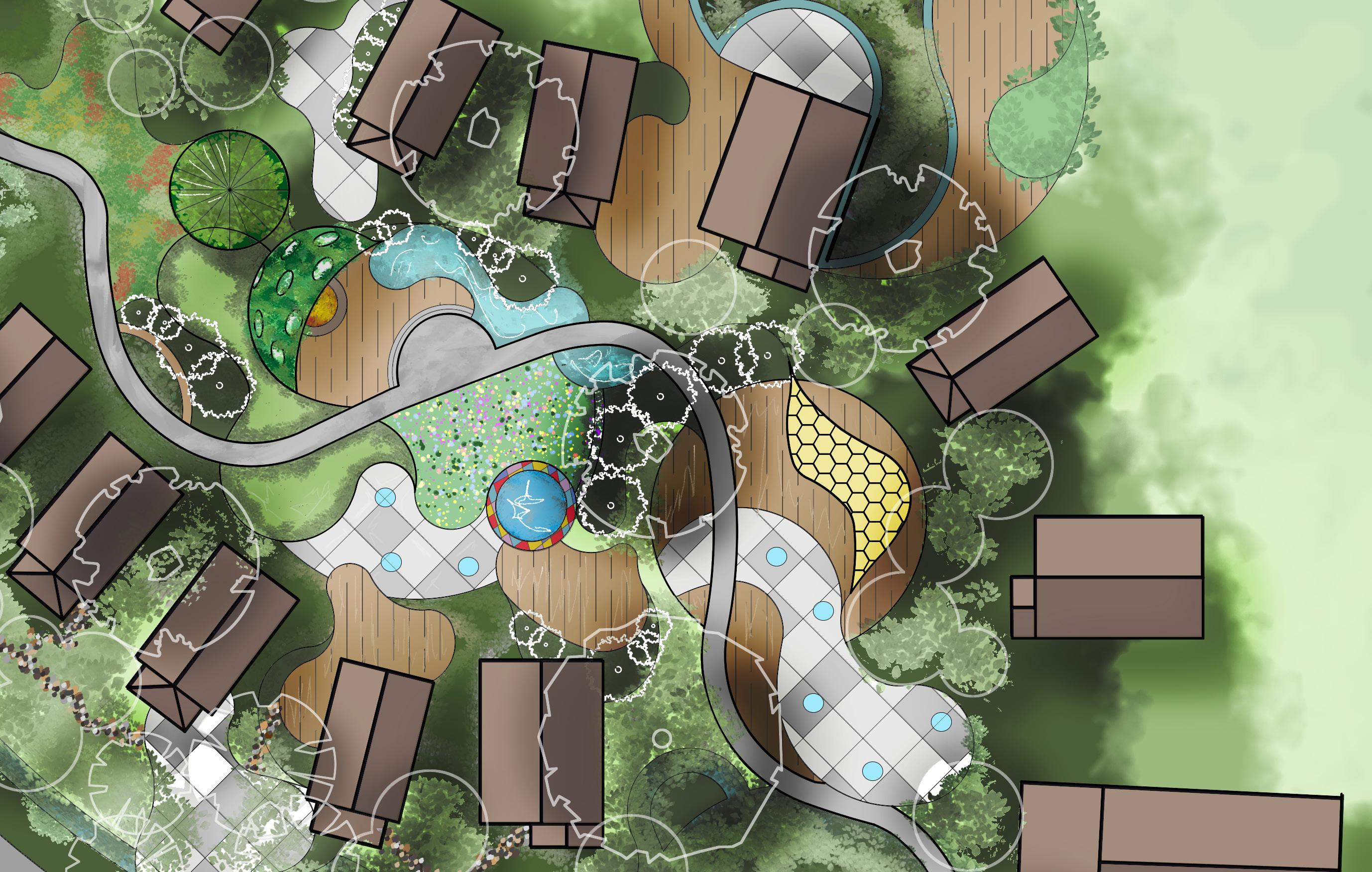 Located on the left side of the site. Most housing would be Tree-House style but site would also feature more accessible housing.