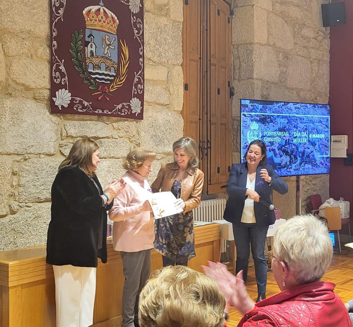 Unha foto para a memoria histórica as homenaxeadas dando ocasión à corporación municipal.