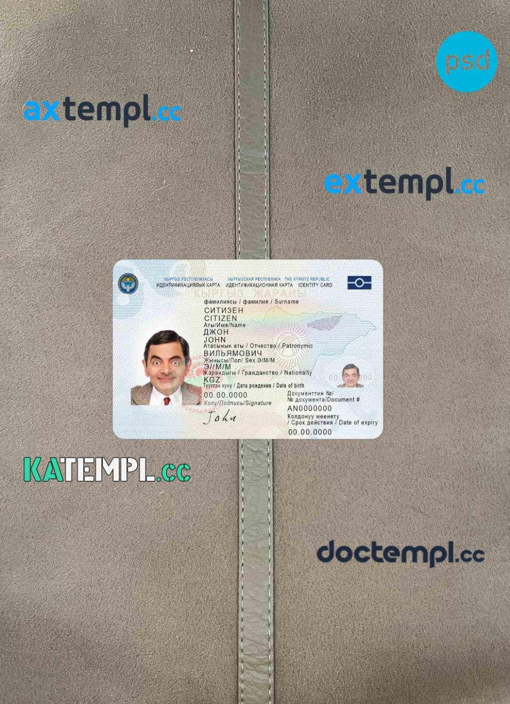 Kyrgyzstan ID card PSD files, scan look and photographed image, 2 in 1 (2017-present)