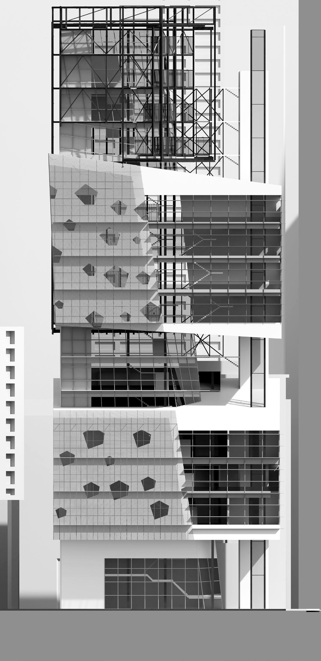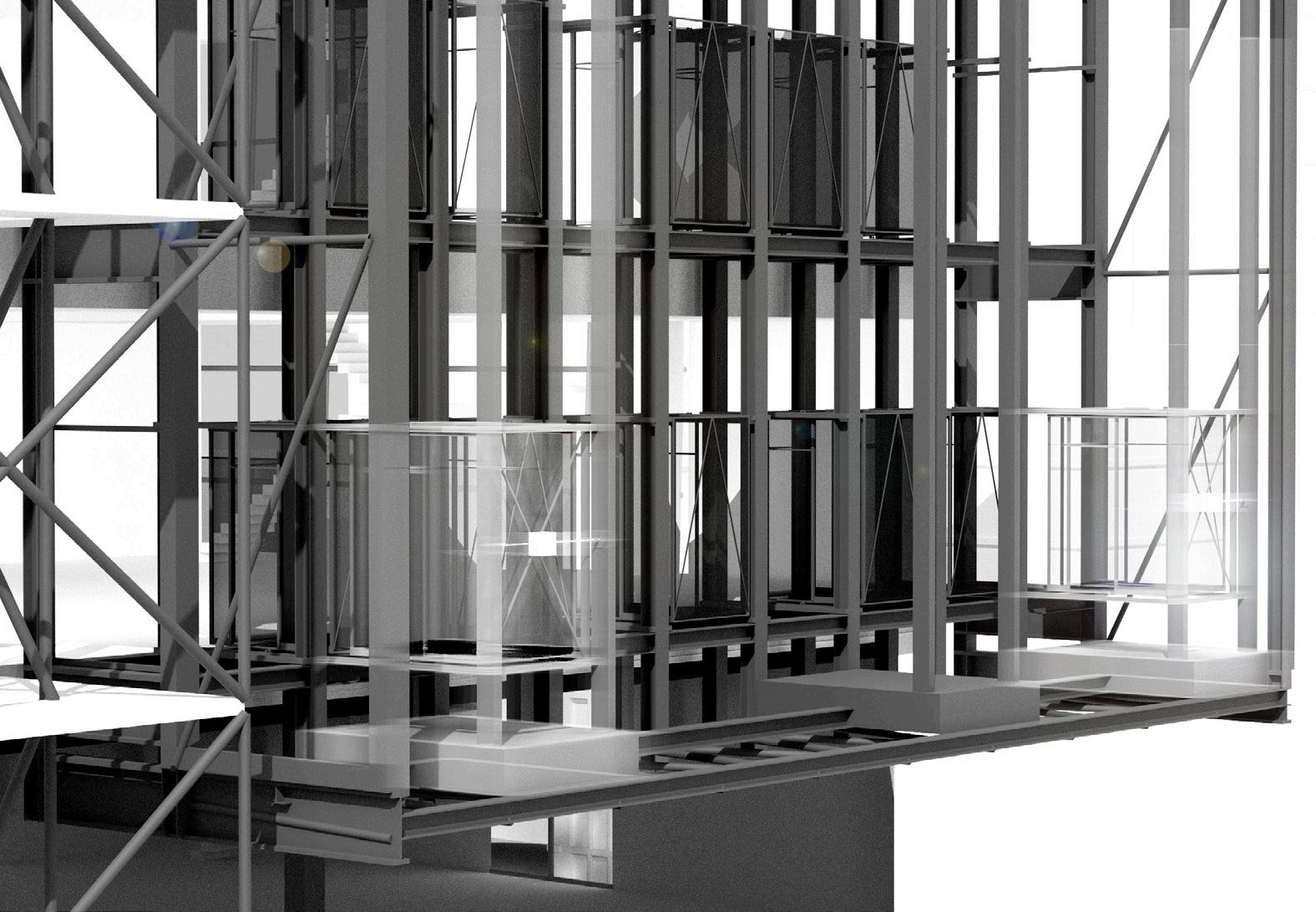 RE:VIVO is a research center focused on augmented reality and utilizing its technological applications to populate the living environment. Implementing this technology could revolutionize how we not only view, but also interact with the tangible world within an augmented condition. The building responds to the notion that users require different environments to maximize productivity by integrating motorized office spaces. These spaces provide users with the ability to collaborate within a private environment.