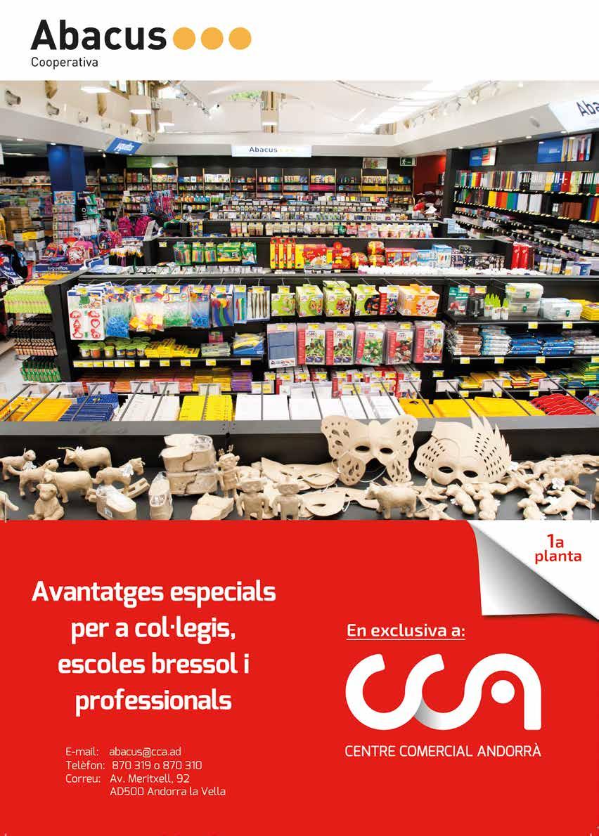 Avantatges especials per a col·legis, escoles bressol i professionals Correu electrònic: abacus@cca.ad Telèfon: