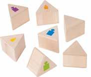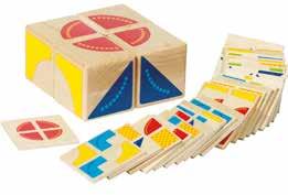 Bola (Ø 50 mm), bola (Ø 60 mm), hemisferio (Ø 40 mm), disco (Ø 60 mm), rueda (Ø 50 mm), rueda (Ø 40 mm), figura cónica 103 mm, cubo (Ø 40 mm), cubo 50 mm, huevera 63 mm, huevera 70 mm, servilletero 47 mm, cuenco 70 mm, cuenco 92 mm, anillo (Ø 48 mm), anillo (Ø 56 mm), anilla (Ø 70 mm), barril (Ø 55 mm), carrete 35 mm, tapa cebolla 50 mm, bolsa de algodón y guía de actividades en 8 idiomas.