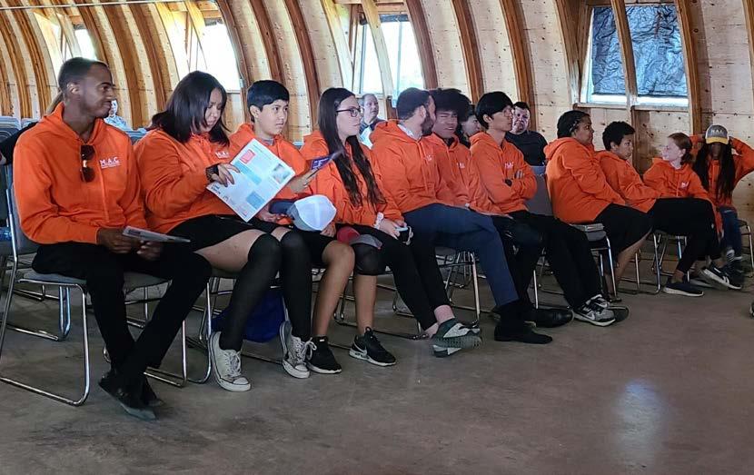 10 members of the Summer Youth Team, seven of whom live in Maskwacis, await their time on the platform during Sabbath School—just one of the ways they helped out during Camp Meeting.