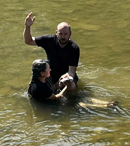 The second baptism happened on the last Sabbath of camp meeting when I baptized Jodi Stimson at the river. Jodi is now a member of the Hanna Adventist Church. Her baptism brought joy to many in attendance, including her church family, her husband, Jim and daughter, Jocelyn. Jodi continues to