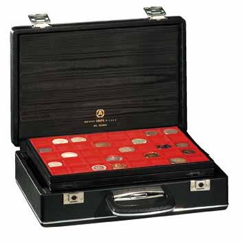 Brown case with one built-in red or green velvet lined half size tray Available model: 20 spaces