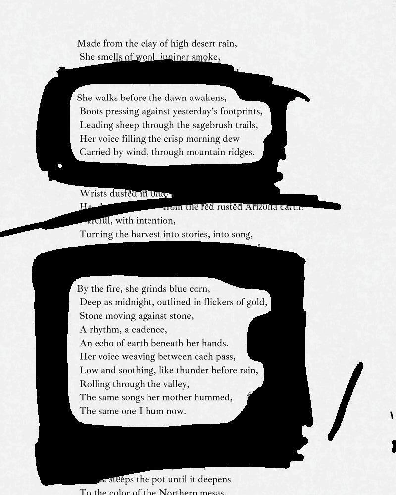 May it be one of the few things I can regulate, For not much has been granted for us to determine. The maize turned masa I hold to craft into tortillas, May it one day resemble my people’s power