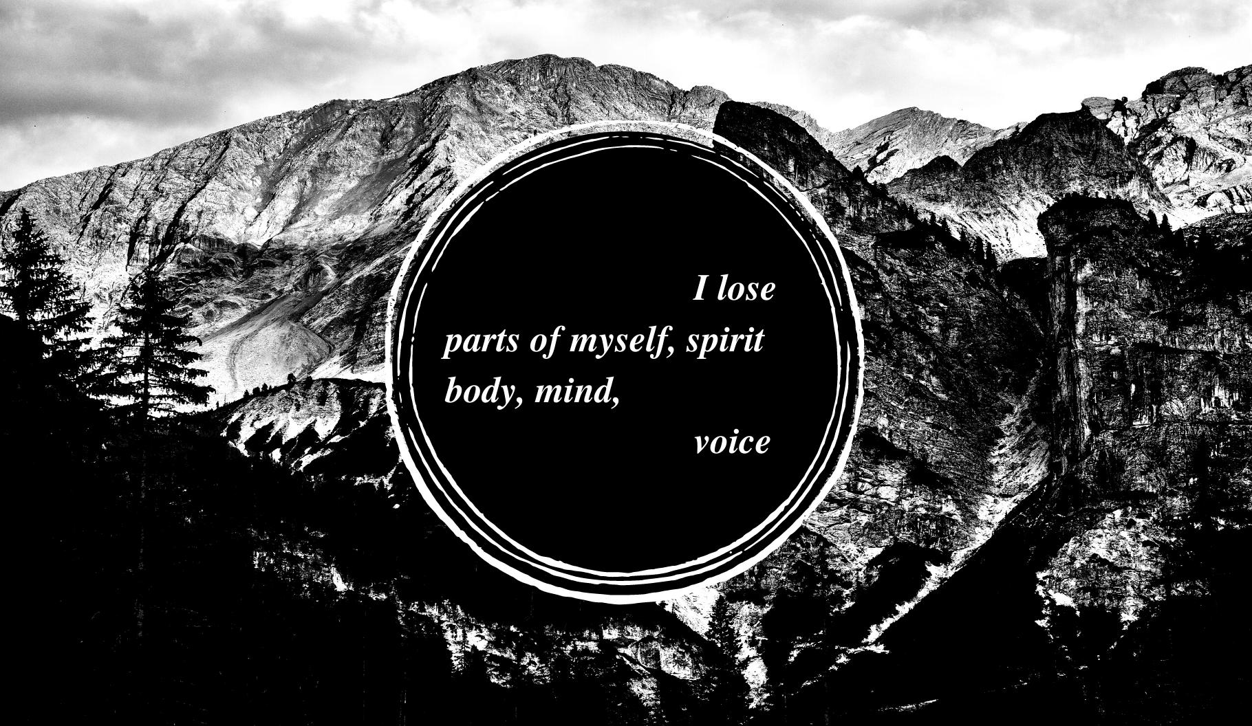 “grief. loss. youth. I feel it in my chest. grief are mountains and mountains have names to them.”