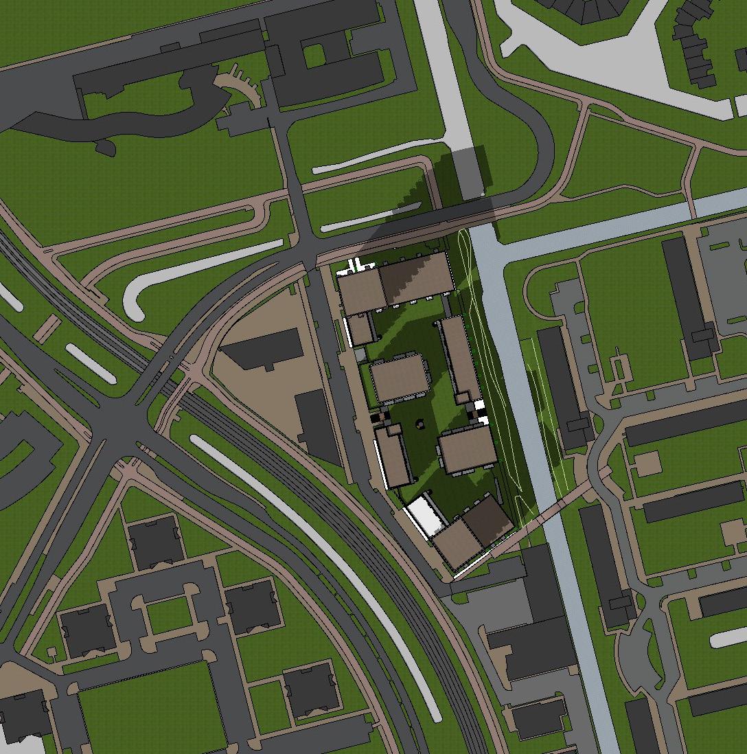 worden verder bepaald door het feit dat parkeren op terrein moet worden opgelost. verhoogd dek met gemeenschappelijke tuinen en een structuur blokken verenigt de essentie van de tuinstad met de logica en de eisen van de 21e eeuw.