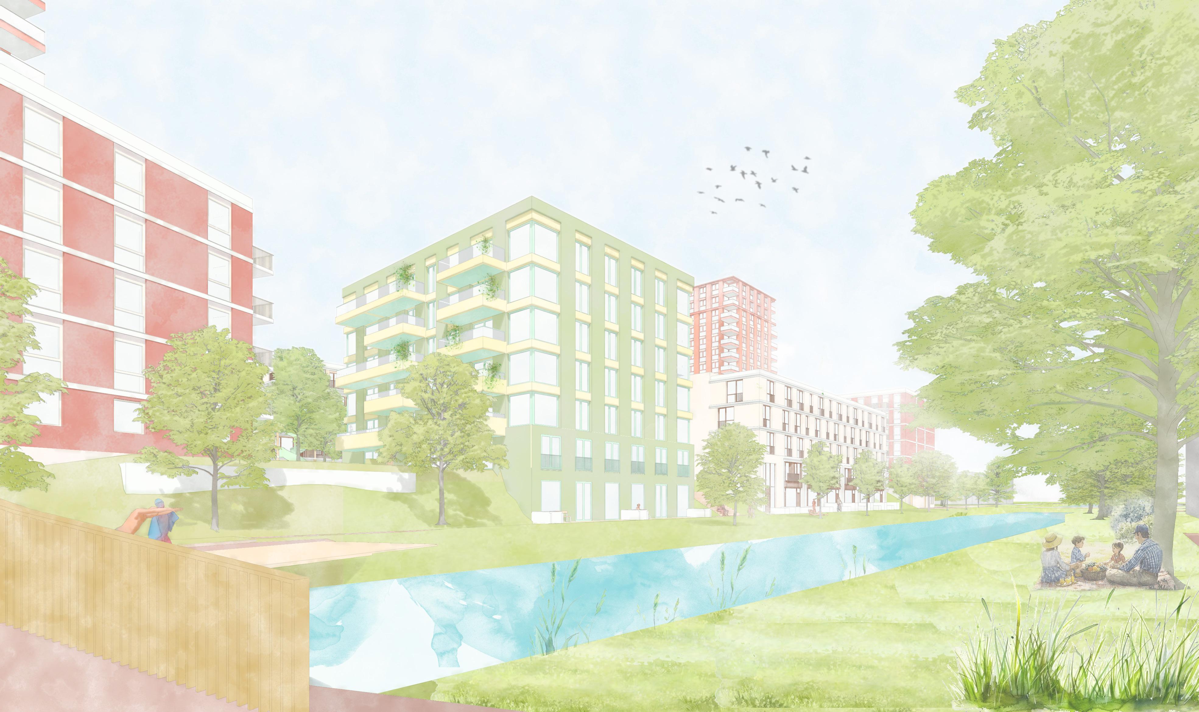 niet alleen om te voorzien in de vraag naar woningen. bouwopgave is ook een manier om de stad als geheel te toekomst- en klimaatbestendig te maken. Hierbij speelt duurzaamheid, zowel sociaal, bouwtechnisch en klimaatadaptief rol. We pakken de principes van licht, lucht en ruimte en aan met een toolbox die ontwerpen met zon, wind, water beplanting als uitgangspunt heeft.