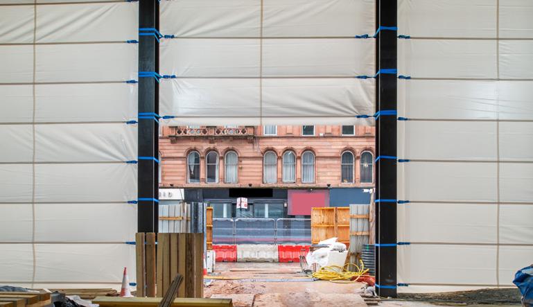Base Structures have recently completed the installation of a series of removable and adaptable temporary fabric screens to aid site access at a prominent city center construction site.