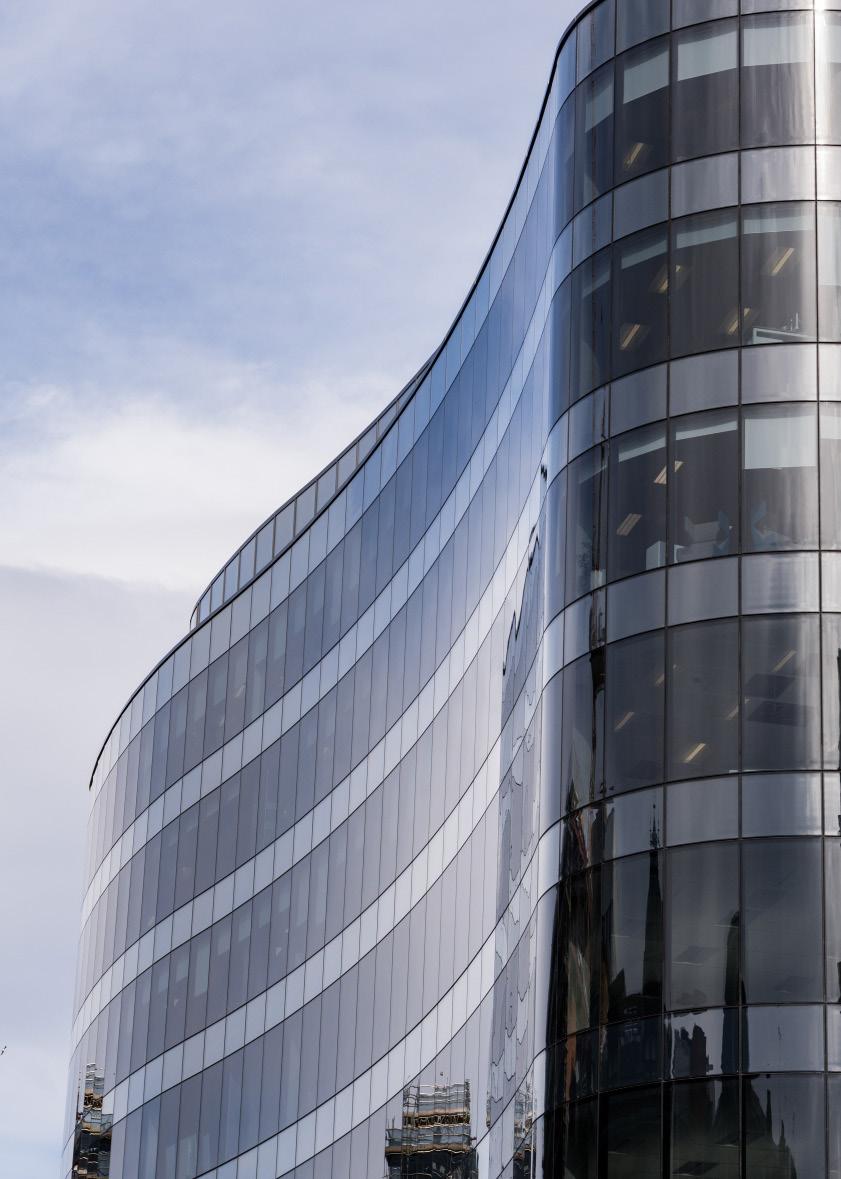manufacture than the virgin product, a figure which rises to 95% for recycled aluminium which is popular for secondary structural elements like curtain walling. Recycled steel is also now being utilised for a minor proportion of the rebar required to take the tensile forces within reinforced concrete, while recycled aggregates and waste products, like pulverised fuel ash and ground granulated blast furnace slag, are routinely specified to offset the use of energy intense cement. Ironically though, the supply of PFA and GGBS is rapidly reducing as coalfired power plants and steel foundries are razed to the ground in the fight to counter Climate Change, making the construction industry’s quest for “ConcreteZero” ever more difficult.