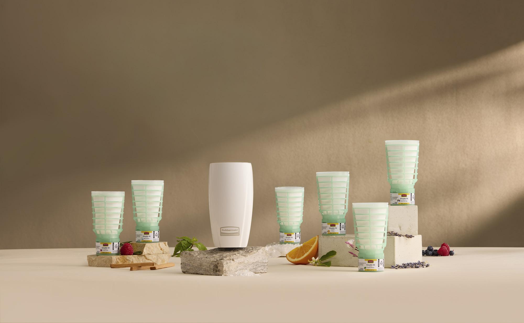 available in six fresh scents (Blue Splash, Citrus Mix, Crystal Breeze, Fruit Crush, Polar Mist, Relaxing Spa), with varying intensities to match your facility’s needs.