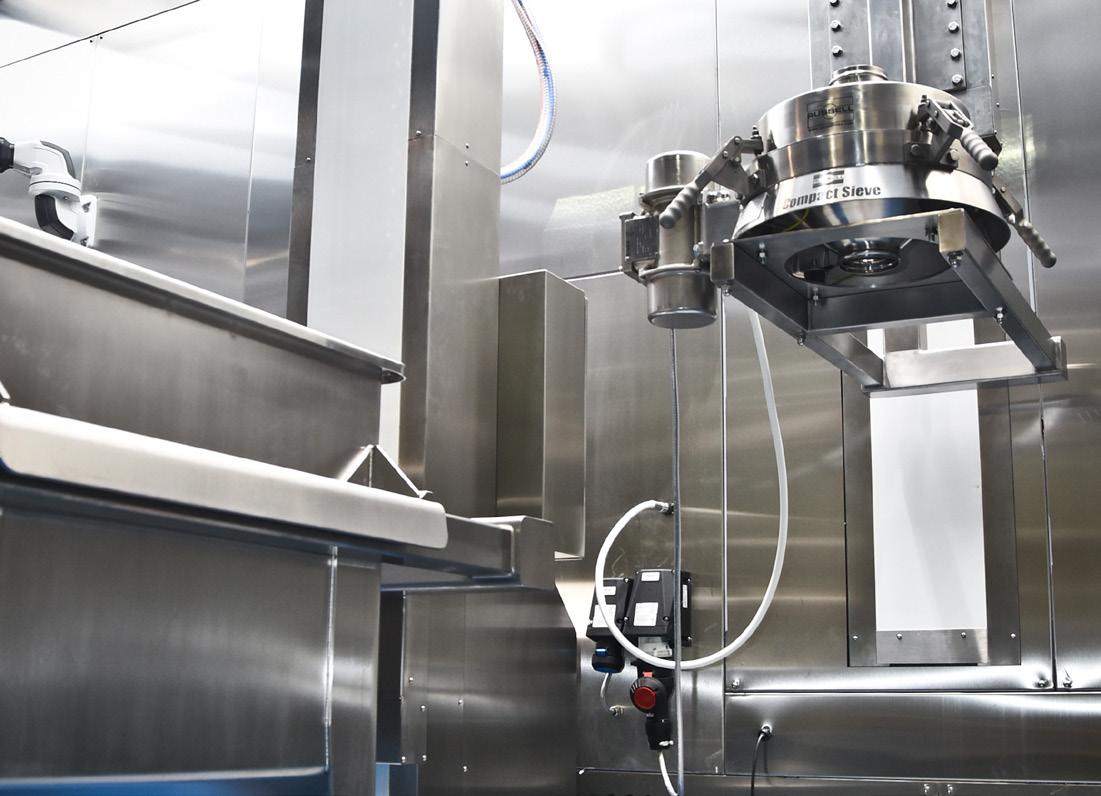 “With the knowledge obtained from material testing at Ajax, our engineers designed an integrated carbon fibre storage and feed system, formed of a hopper and screw feeder, that would provide a dependable onward supply of material from the line’s rotary valve and vacuum loader above.”