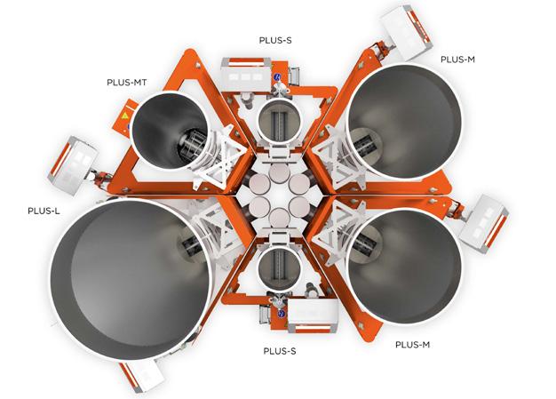 flowing powders and flakes. The solution is available for all four models (PLUS-S, PLUS-M, PLUS-L, PLUS-MT) and can be installed on new equipment or as a “mounting kit” on existing feeders.