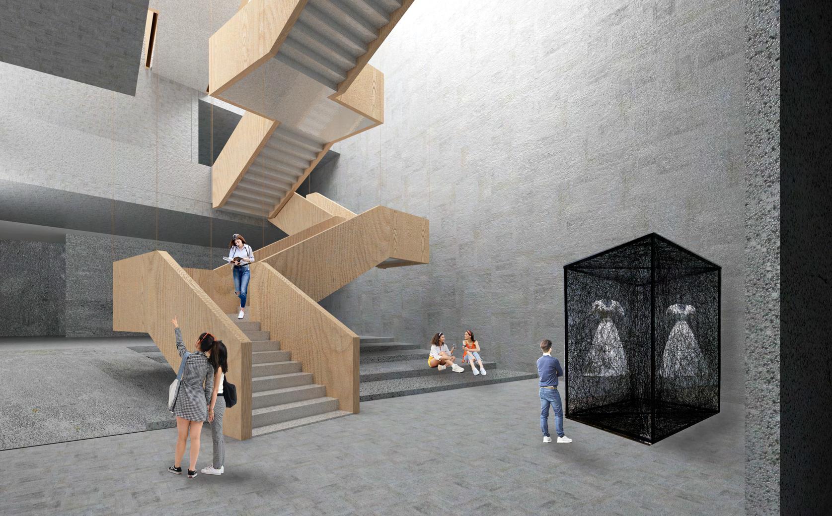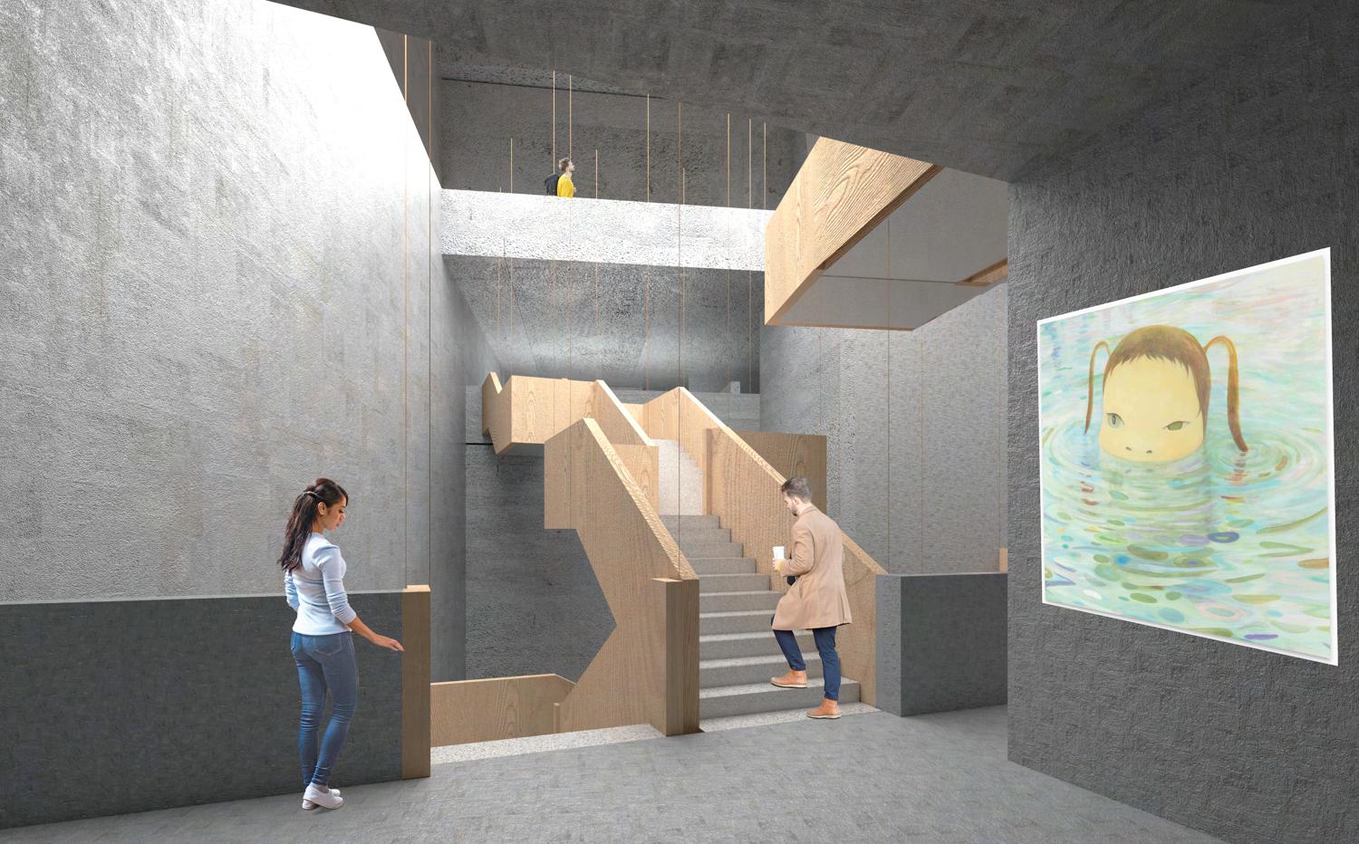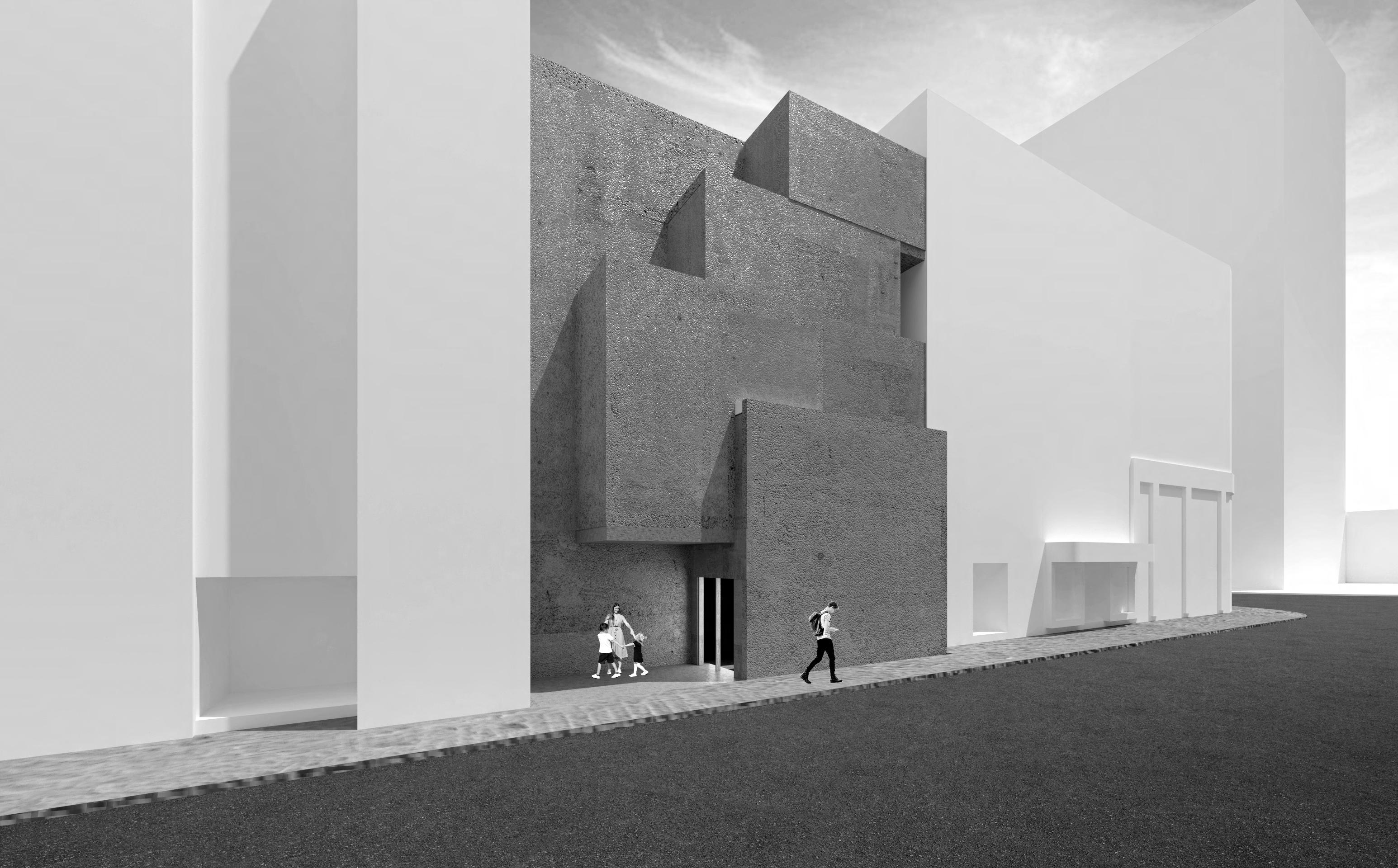 The objective of this project was to create a contemporary museum for Little Tokyo in Downtown Los Angeles, California. Students were tasked with adapting to both the front, East 1st st., and back of the museum and displaying the works of Yoshitomo Nara. The idea of my museum was conceived through the concept of stacking and joining multiple rectangular prisms and cubes to create spaces within both sides of the museum. This leaves a negative space in the middle of the building that is used for circulation and the atrium. The big skylight highlights the main atrium stairs, showing the contrast of heavy and light as well as light and dark from the outside to the inside of the museum.