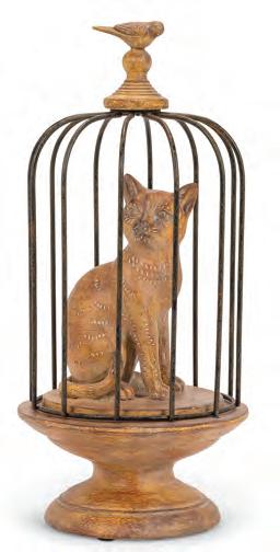 Min 4 25”H 12/C Bird Stake with Gazing Ball. Brown/Silver. Metal.