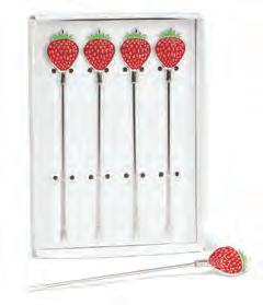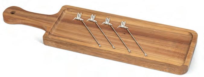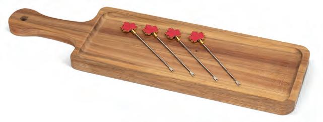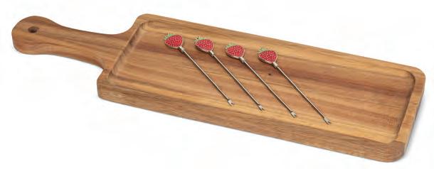 Acacia wood board and 4 pick set Min 4 17"L 12/C Long Board with Strawberry Picks. Natural/Red. Acacia/Stainless Steel.