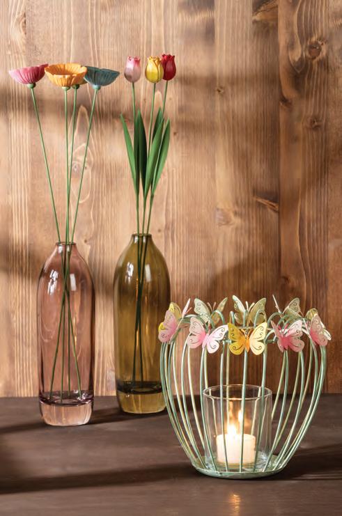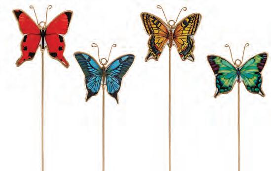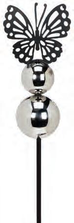 Min 4 24”H 12/C Butterfly Stake with Gazing Ball. Black/Silver. Metal.