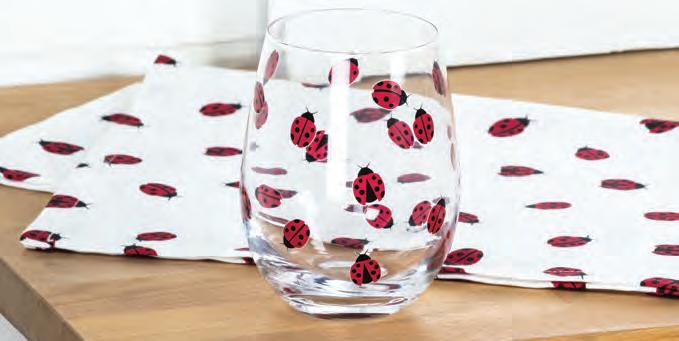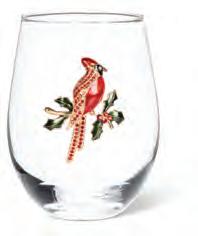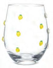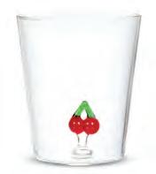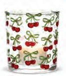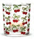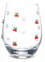 Min 4 4.5"H (18oz) 24/C Stemless Glass with Cherries. Clear/Red. Glass.