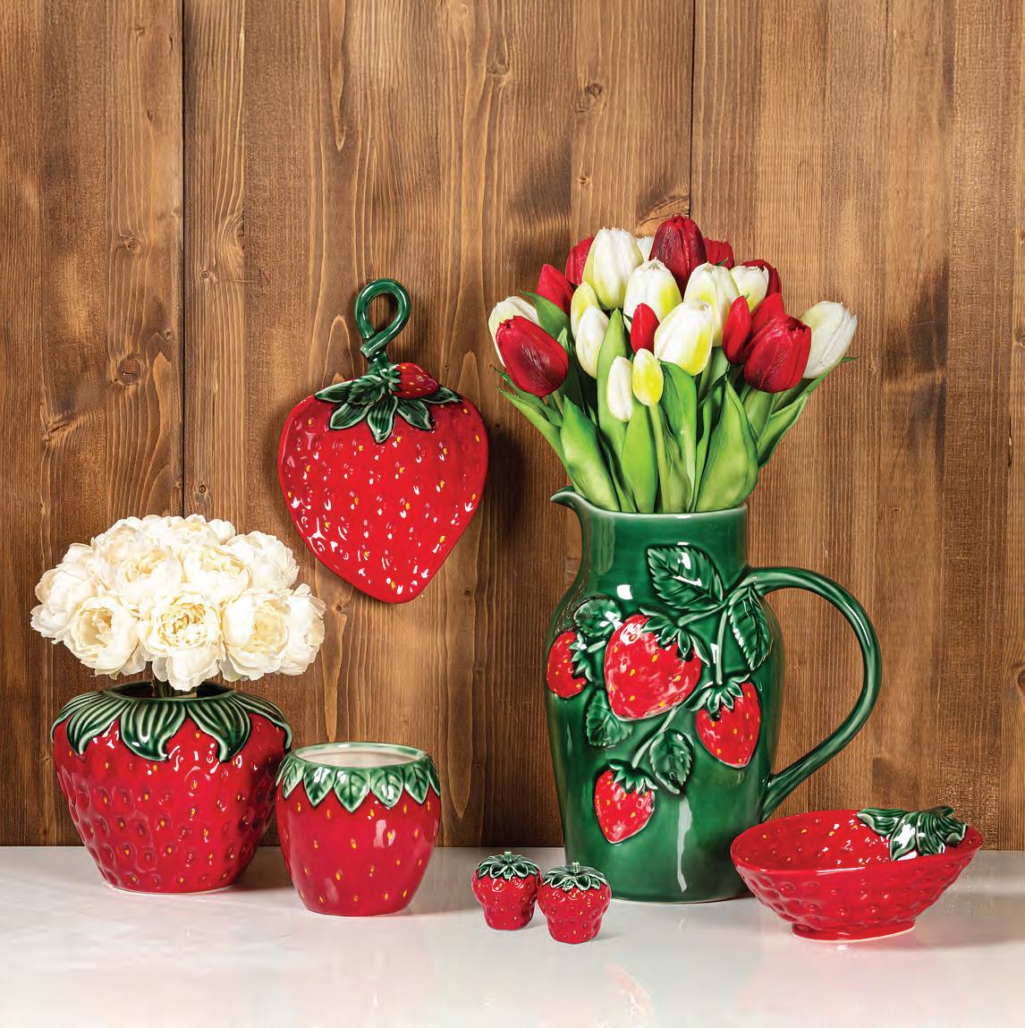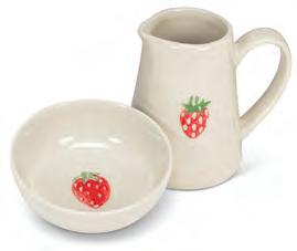 Min 4 3"H (5oz) 48/C Strawberry Mini Jug. Ivory/Red. Stoneware.