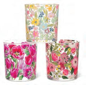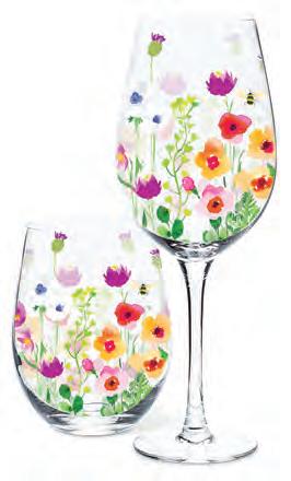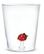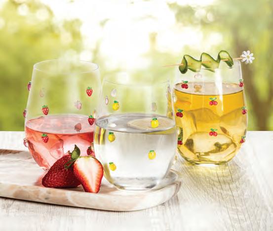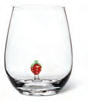 Min 6 4.5"H (18oz) 48/C Strawberries & Flowers Stemless Glass. Clear/Red. Glass.