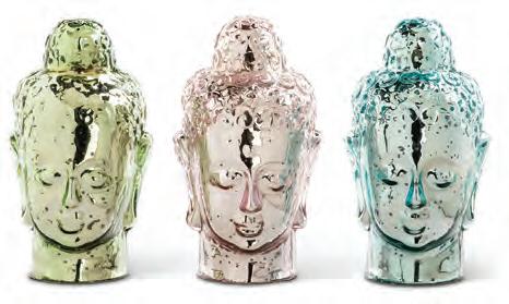 Min 3 7.5”H 12/C Large Buddha Head. 3 Assorted. Assorted. Glass.