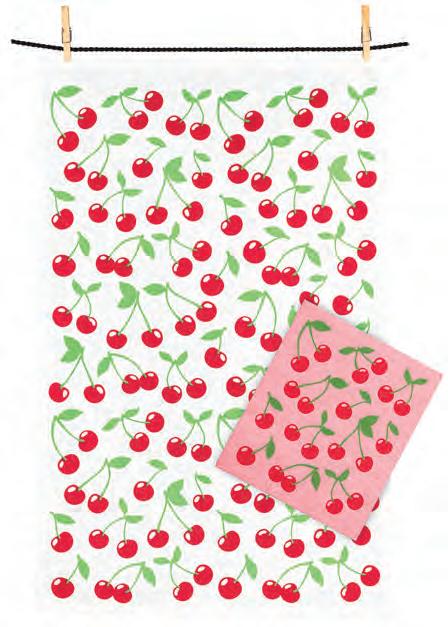 Cherries Dishcloth & Kitchen Towel Set. Red/Pink. Cotton/Cellulose.
