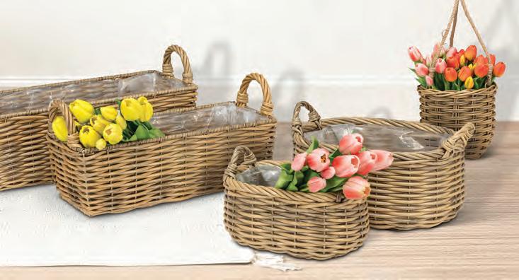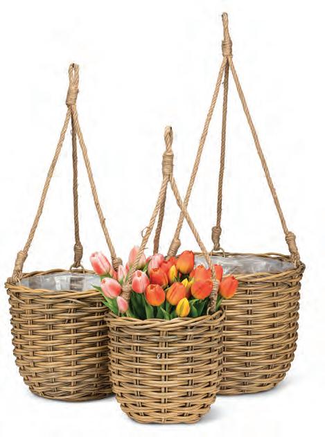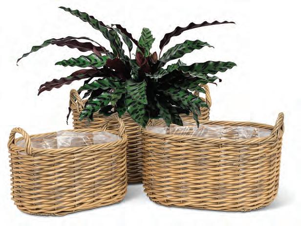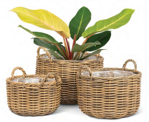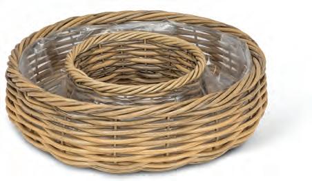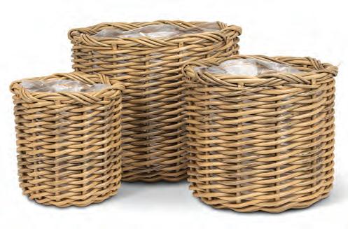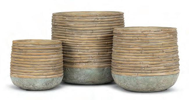 Medium Rattan Look Planter. Tan. Cement.