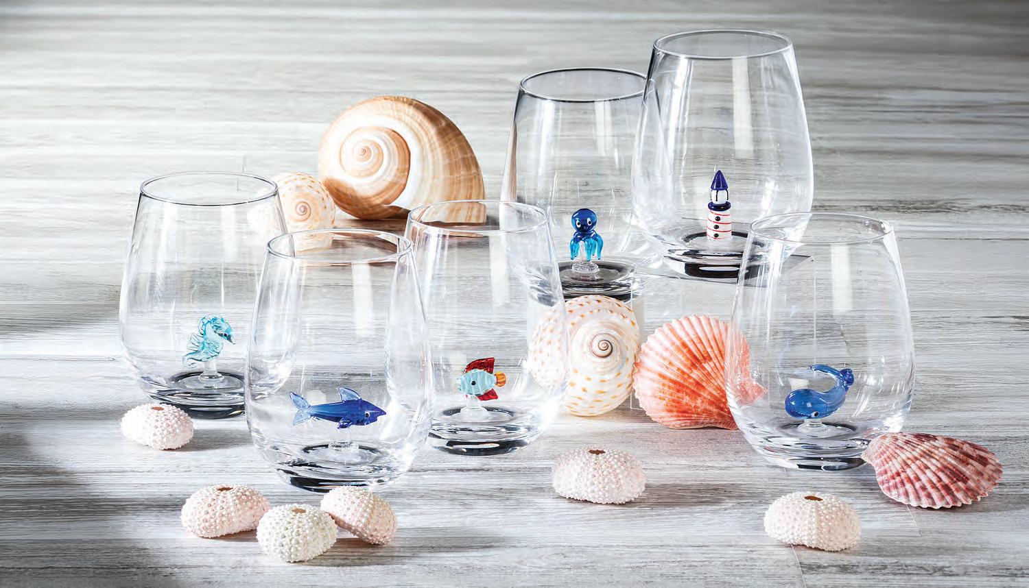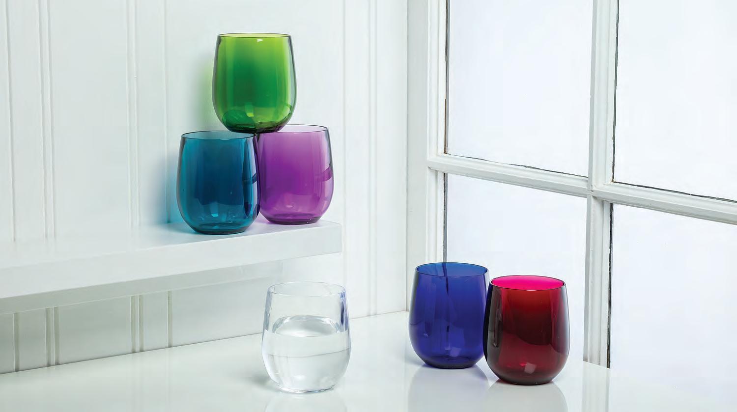 Min 6 4.5"H (18oz) 24/C Stemless Wine Glass. Rainbow. Glass.