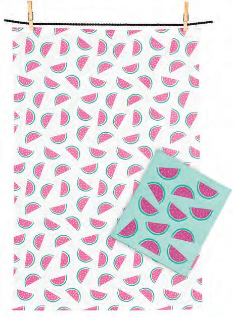 Watermelon Dishcloth & Kitchen Towel Set. Pink/Turquoise. Cotton/Cellulose.