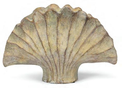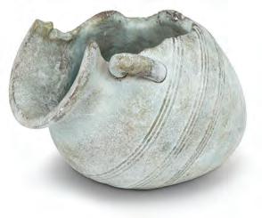 Min 1 7”H Ø:4”D 12/C Small Furled Leaf Vase. Green. Cement.