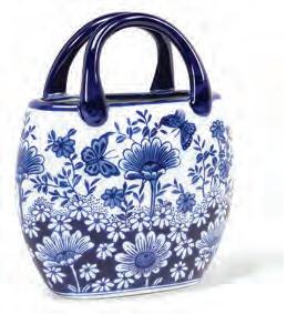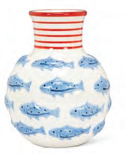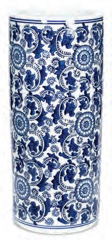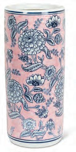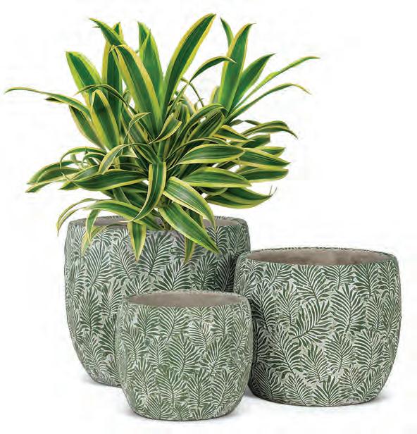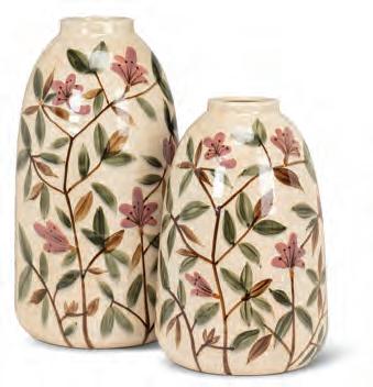 Min 1 9”H Ø:2”D 16/C Fern Print Vase. Ivory/Green. Ceramic.