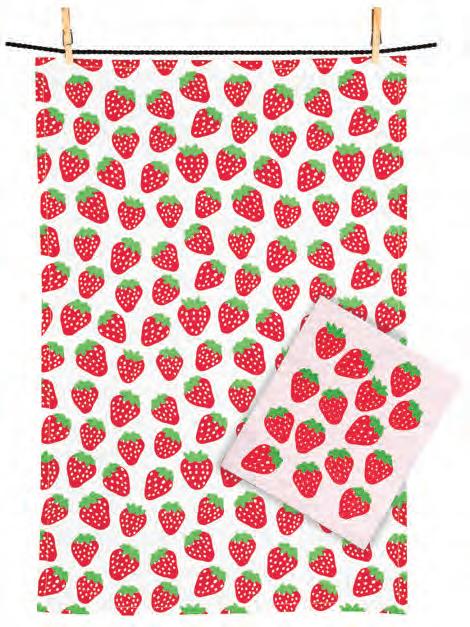 Min 1 6.75 x 8.25"L 125/C Strawberries Dishcloth & Kitchen Towel Set. Pink/Red. Cotton/Cellulose